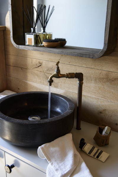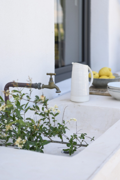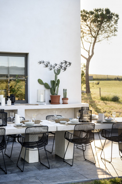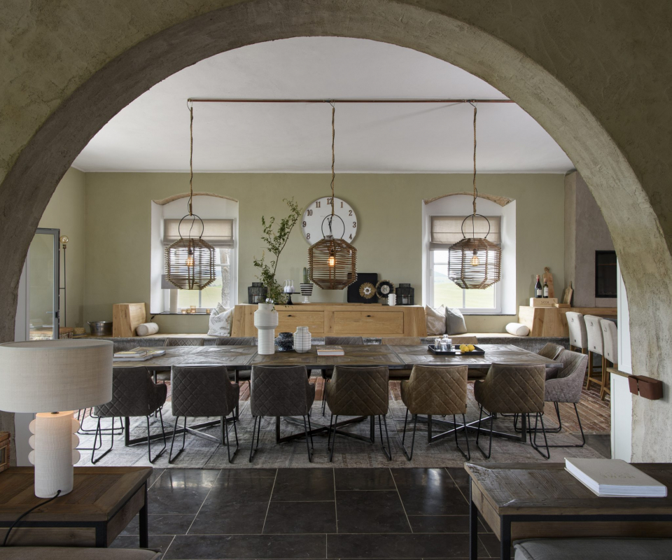 Die Ausstattung des Interieurs und der Außenbereiche sollte sowohl familiengerecht sein als auch mit der richtigen Mischung aus elegantem und rustikalem Stil Feriengäste ansprechen. Dafür griffen die Belgier Maren und Dennis nicht nur auf ihre eigenen Bestände aus dem Shop Kaiser Homes zurück, sondern auch auf die Möbel und Accessoires von Rivièra Maison sowie Maßanfertigungen des Bau- und Designstudios Ben Kaiser Company.