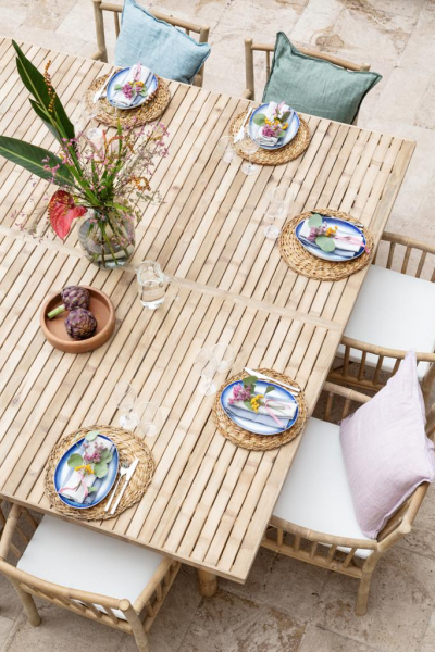 Egal ob kleine Fläche oder kleine Besetzung: Tisch und Stühle sollen in jedem Fall praktisch, komfortabel und schön sein und zusammen mit warmen Temperaturen den kulinarischen Genuss im Freien noch attraktiver machen. Unabhängig von der Materialwahl ist in diesem Jahr auffällig, dass sich die Optik der Gartenmöbel eher zurückhält, ohne dabei an Raffinesse zu verlieren. Umso opulenter darf es auf dem und am Tisch zugehen: an liebevoller Deko, leckerem Essen und lebhaften Gesprächen wird auf keinen Fall gespart.
