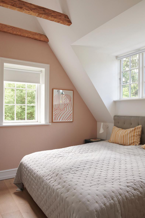 Durch Cam Cam Copenhagen ist Sara natürlich Expertin für die Einrichtung von Kinderzimmern. Genau das war im eigenen Haus jedoch gar nicht so einfach: „Unsere Kinderzimmer sind sehr klein, sodass wir uns in gewissen Grenzen bewegen mussten. Kleiner Tipp von mir: Ich versuche immer, ein Zimmer so zu dekorieren, dass eine nutzbare Bodenfläche übrigbleibt, wenn alle Möbel aufgestellt sind. Das heißt, wenn Sie ein sehr längliches Zimmer haben, würde ich das Bett an das Ende des Zimmers stellen, also an die kürzerer Seite, anstatt die länglichen Linien zu unterstreichen. So habe ich es auch mit unseren Kinderzimmern gemacht. Dann habe ich auch ein paar Tapeten in das Zimmer unseres Sohnes geklebt, damit er etwas Lustiges zum Anschauen hat. Unsere Tochter hat eine bemalte Wand bekommen, die ihrem Zimmer etwas Farbe verleiht. Außerdem habe ich in beiden Zimmern kleine Zonen eingerichtet – Schlafzone, Spielzone, Arbeitsbereich. Das ist sehr praktisch, erleichtert das Aufräumen und lässt die Zimmer größer wirken.“