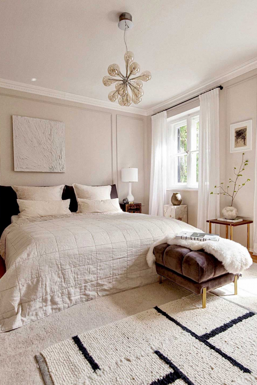 Beige ist in seiner Eigenschaft vor allem zeitlos und unaufdringlich. Im Vergleich zu einem klassichen Weiß, macht der warme Ton den Raum zudem wohnlicher. Für viele, die sich nicht übermäßig mit ihrer Einrichtung beschäfitgen möchten, kann beige also eine unkomplizierte und zugleich elegante Lösung sein.