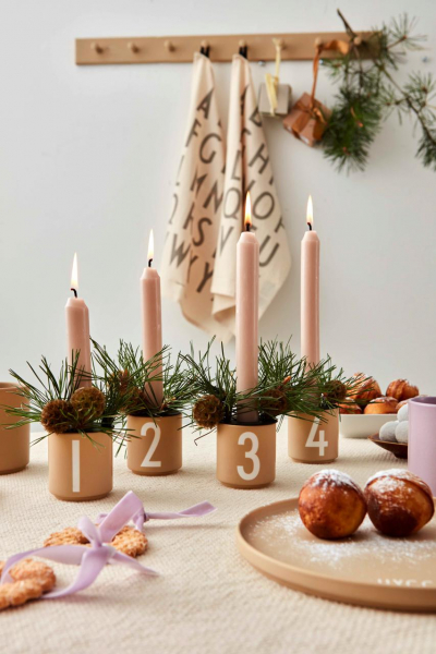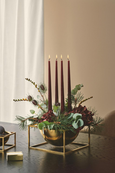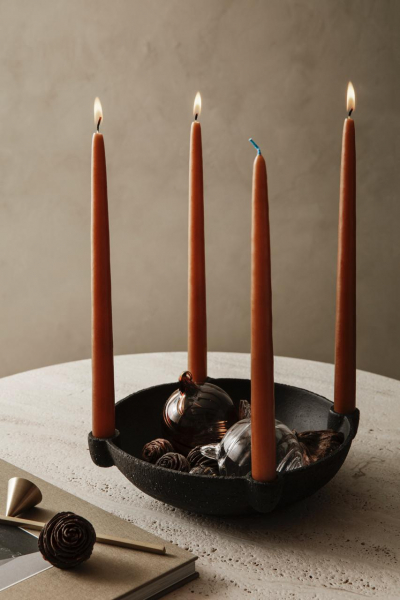 Statt aufwendigen Kränzen einfach eine moderne Adventsschale (Villeroy & Boch) mit besonderen Kerzen kombinieren.
