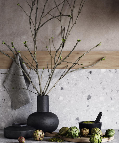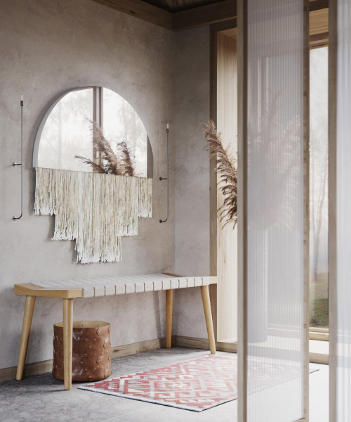 Um die Stille und Ruhe zu erreichen, die der Name des Hauses verspricht, setzte sie bei der Einrichtung konsequent auf Naturtöne und -materialien. Grau-, Beige- und Brauntöne in allen Schattierungen geben den Ton an. Farbtupfer setzen lediglich ein paar ausgewählte Möbelstücke und Accessoires. „Was Farben angeht, bevorzuge ich komplizierte, tiefe Töne“, sagt Maria Marinina. „Sie verleihen dem Innenraum ein weiches Aussehen.“ Viel Holz, Stein und Leinen tun ihr Übriges, um den ruhigen Charakter des Hauses zu komplettieren.