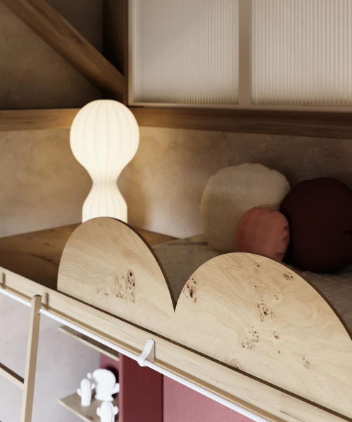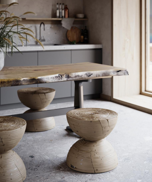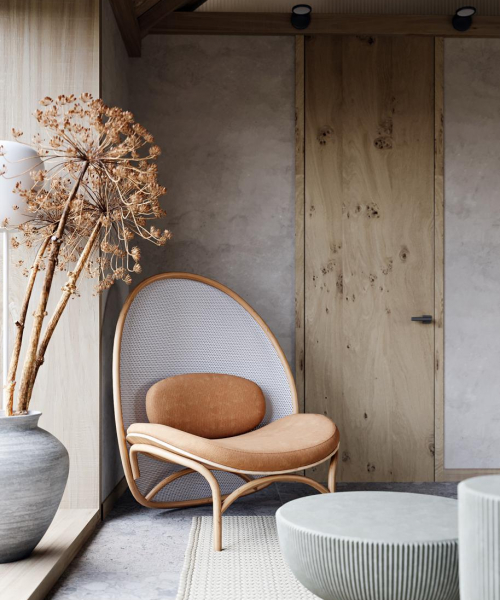 Doch wie garantiert man, dass ein Interieur mit ruhigen Farben und natürlichen Materialien nicht langweilig aussieht? Maria hat einen Tipp: „Ich liebe es, mit verschiedenen Formen zu spielen! Das ist meine liebste Designmethode“, erklärt sie. „Sobald Sie Elemente mit interessanten und ausdrucksstarken Formen in das Interieur einfügen, geben Sie diesem eine besondere Würze und verleihen ihm eine Persönlichkeit.“ Für das House of Silence hat die Designerin deshalb einige besondere Möbel-Klassiker ausgewählt, unter anderem den berühmten Hocker von Riva 1920 für den Essbereich sowie den Chips Lounge Chair von Ton für das Wohnzimmer.
