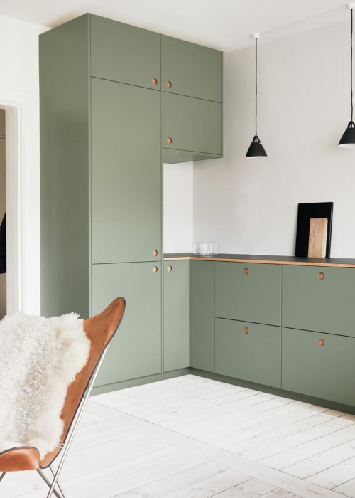 Skandi-Look: Linoleum-Fronten Basis in einem Olivton (Reform)