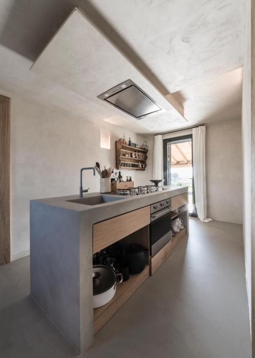 Kücheneinbau einer privaten Villa in Mantua mit einer betonähnlichen Oberfläche aus Zement und Harz (Perfect Combination von HD Surface)