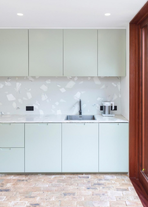 Das Londonder Designstudio Russian For Fish realisierte ein Projekt mit einem großzügig gemusterten Terrazzo-Arbeitsfläche.
