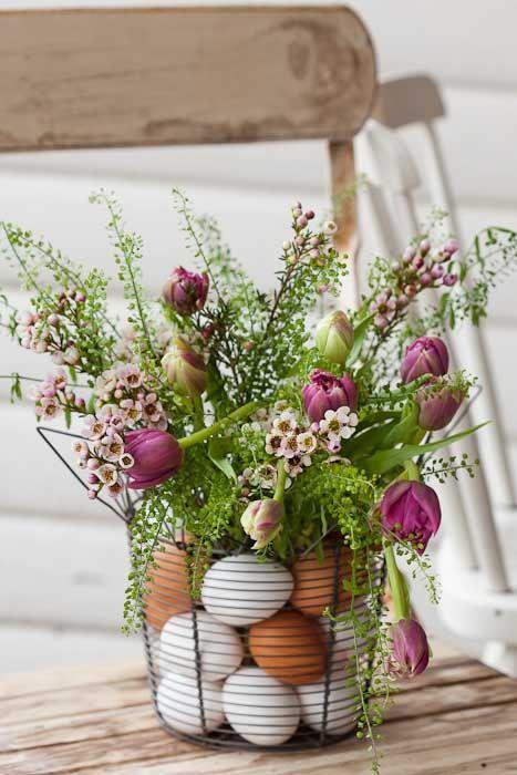 Auch an Ostern bringen Blumen den Wow-Effekt auf die Tafel und benötigen je nach Bouquet oder persönlichem Stil eigentlich keine weiteren Accessoires. In dieser Jahreszeit eignen sich natürlich besonders frühe Blüher wie Tulpen, Anemonen, Mohn, Ranunkeln oder Osterglocken (→wie man Blumen richtig bindet, zeigen wir hier). Für einen dezenteren Auftritt und als starkes Ästchen für die Eierdeko empfehlen sich Weidenkätzchen oder Kirschblüten.