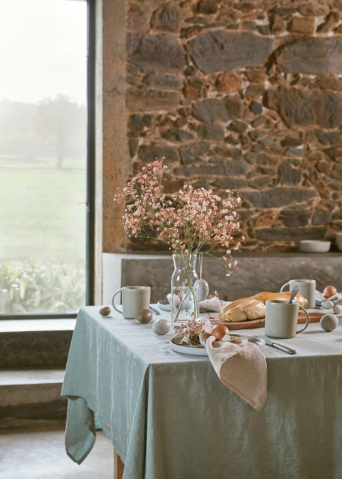 Die Zeiten, in denen Karotten als Blumenstrauß inszeniert wurden oder Marzipanhühner über den Tisch staksten, sind (zum Glück) vorbei. Jetzt finden sich hier Eier mit moderner Line Art Bemalung oder auch mal ganz natura, lockere Blättergirlanden, aber auch mal folkloristische Tischsets mit Limetten und Gemüse statt Ostereiern.