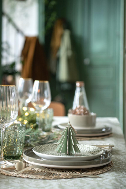 Farben, Formen und Materialien greifen auf die Natur zurück und kreieren eine entspannte Weihnachtsatmosphäre. Warmes, zartes Salbeigrün, organisches Design und unbehandeltes Holz kommen genau wie natürliche Motive auf Geschirr und Textilien auf die Festtafel. Dabei soll es selbstverständlich nicht an Eleganz fehlen. Mit Samt, Glas und Porzellan in lebhaften Farben sowie Ornamenten in Gold, Dunkelgrün, Pink oder Fuchsia können hier tolle Akzente gesetzt werden.