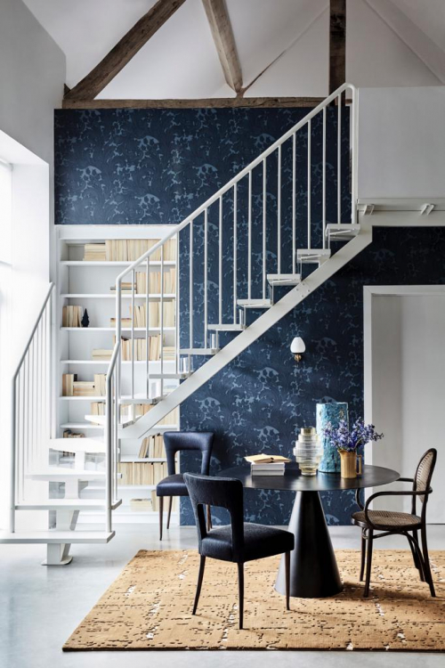 Neben der klassischen Statement-Wand hinter Sofa oder Bett, lohnt sich übrigens auch ein wagemutiger Blick nach oben: Eine tapezierte Zimmerdecke bringt eine ganz besondere Atmosphäre und im Gegensatz zu der weit verbreiteten Meinung, dass gestrichene oder tapezierte Decken erdrückend wirken, erscheint der Raum in den meisten Fällen dadurch ehr höher und größer.