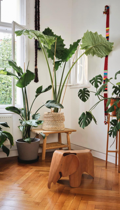 Zwar träumt fast jeder von hohen Altbauwänden, bei diesem Trend haben aber auch die 2,30 m niedrigen Neubauwände mal ihren Vorteil. Denn Zimmerpflanzen werden nicht mehr nur auf Fensterbänken oder in Regalen drapiert, sondern hängen ganz lässig von oben herab.